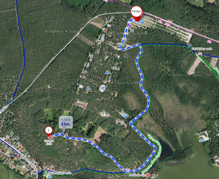 Ideálním místem startu je parkoviště Doksy - https://mapy.cz/s/jevamumuca