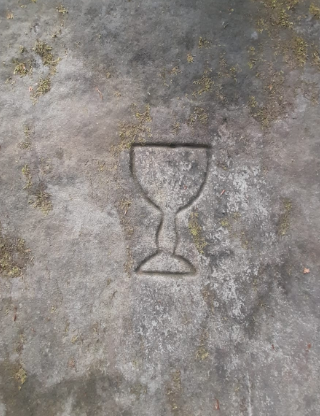 Důkazovou fotkou je vyrytý kalich ve skále, který vás bude potkávat v celém skalním bludišti.